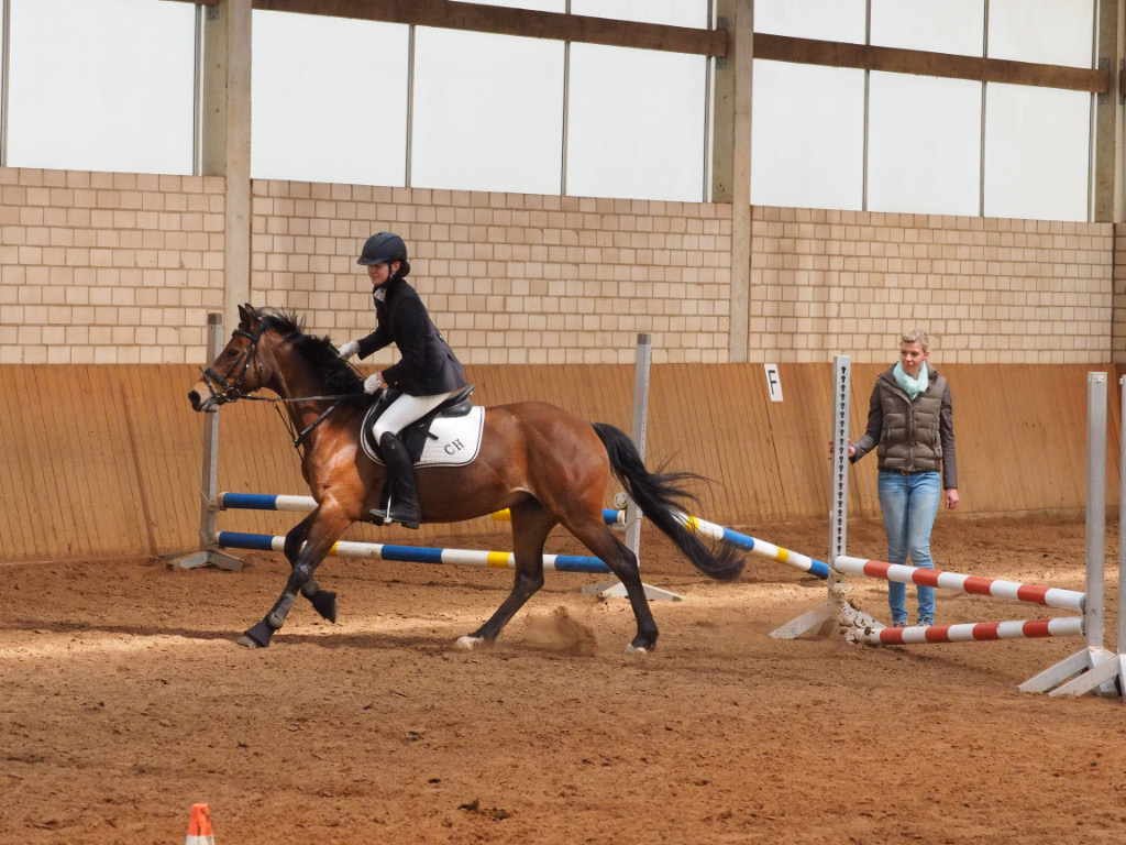 Ende April war es endlich soweit. Passend zum Sonnenschein strahlten auch die Reiter um die Wette. A-Dressur, E-Dressur, Reiterwettbewerb mit oder ohne Galopp, Springreiterwettbewerb, E-Springen und natürlich ein Jump& Run standen auf dem Programm unseres internen Hofturniers.